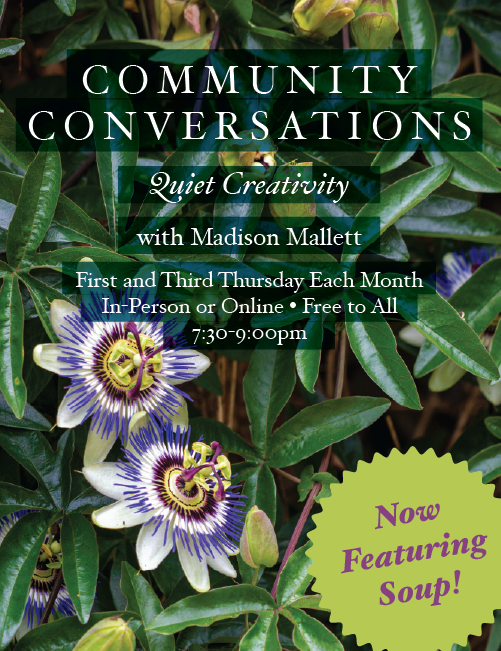 with Madison Mallett, 1st and 3rd Thursday each month, 7:30-9:00pm